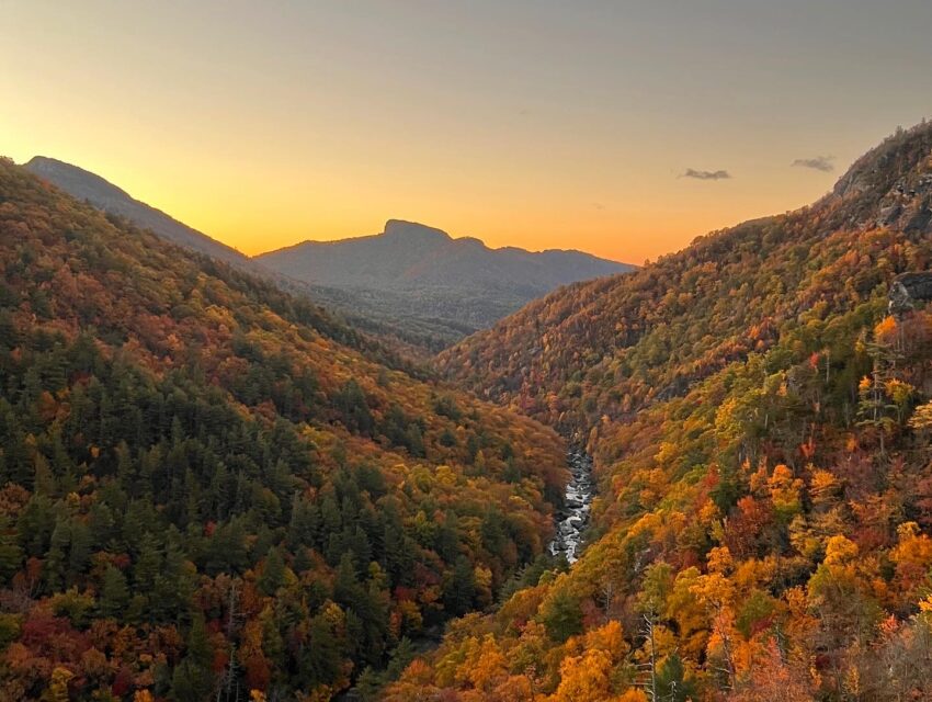 Fall hikes are essential in Asheville, but not all trails are created equal. For an easy and family-friendly option, Graveyard Fields on the Blue Ridge Parkway offers waterfalls, wide-open fields, and gorgeous fall colors. If you’re up for more of a challenge, hit the trail to Black Balsam Knob. The balds here offer unobstructed views, and it’s one of the best places to catch both a sunrise and sunset during fall.